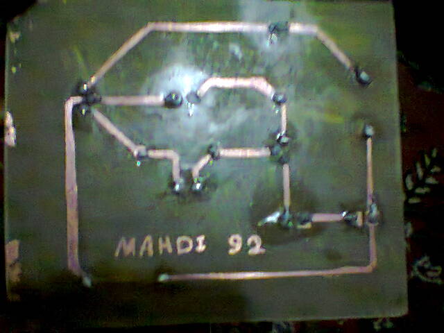 این اولین مدار چاپی من بود که ابتدا با استفاده از نرم افزار Proteus اون رو طراحی کردم و بعد با استفاده از روش معمول اتو بر روی مدار چاپش کردم.